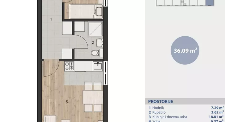 Sve to stvara živopisno i aktivno okruženje koje kombinuje udobnost, funkcionalnost i visok turistički potencijal – kako za odmor, tako i za investiciju. U ponudi je lux stambeno-poslovni objekat sa smeštajnim kapacitetom od 24 apartmana i dva lokala, koji ispunjava sve najsavremenije standarde izgradnje: Spoljna demit fasada i unutrašnja izolacija kamenom vunom Prvoklasna PVC stolarija sa ALU roletnama Kupatila i kuhinje sa kvalitetnom podnom i zidnom keramikom Tarkett–parket u svim prostorijama Etažno grejanje Parking mesta ispred objekta (kupuje se posebno) U ponudi je i apartman dupleks, jednoiposobne strukture, koji se nalazi u potkrovlju objekta i prostire se na dva nivoa. Prvi nivo čine ulazni hodnik, kupatilo, dnevni boravak sa kuhinjom i trpezarijskim delom, dok stepenice postavljene u uglu dnevne sobe vode na galeriju gde je predviđena spavaća soba. Završetak radova i mogućnost useljenja planirani su do kraja 2026. godine. Napomena: prikazani rasporedi nameštaja su ilustrativni i predstavljaju samo jedan od mogućih predloga uređenja prostora – kupci imaju potpunu slobodu organizacije u skladu sa sopstvenim željama i potrebama.