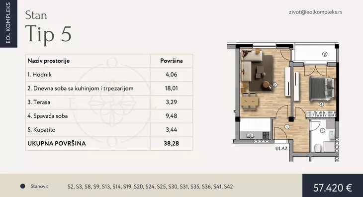 Jednosoban stan na prodaju, Novogradnja, Čuka 2, 63162€, 38.28m²