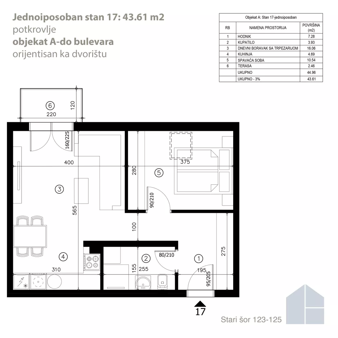 - Objekat A – stambeno-poslovni objekat spratnosti P+2+Pk, sa liftom, koji se nalazi uz ulicu Stari šor. Sadrži 17 stanova i 2 poslovna prostora.