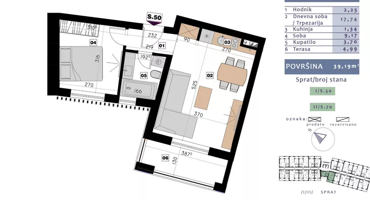 Dvosoban stan na prodaju, Novogradnja, Gradske lokacije, 39.09m²