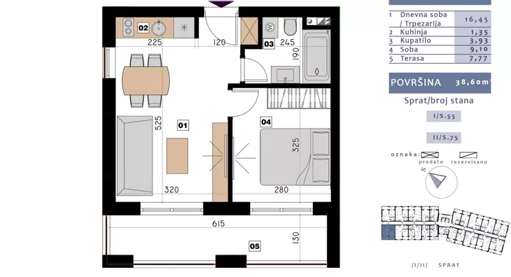 Dvosoban stan na prodaju, Novogradnja, Gradske lokacije, 38.6m²