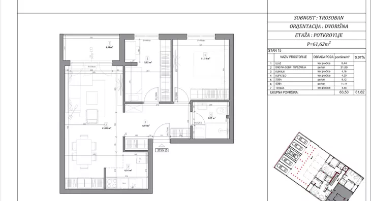 Stambeni objekat Su+P+2+Pk (dupleks) sa liftom na Grbavici (kod Limanske pijace) - Doža Đerđa