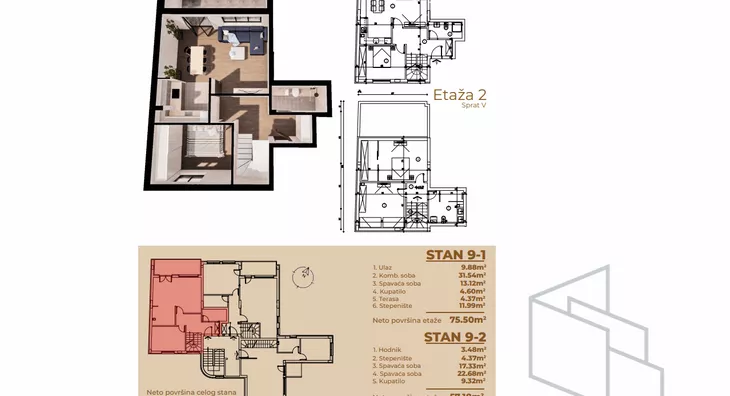 Sve tri stambene jedinice su po strukturi dupleksi sa drugom etažom.