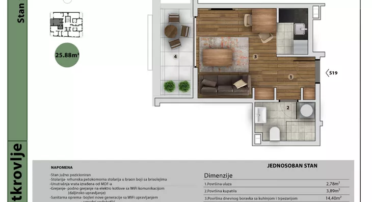 Jednosoban stan na prodaju, Novogradnja, Banja Vrujci, 25.88m²