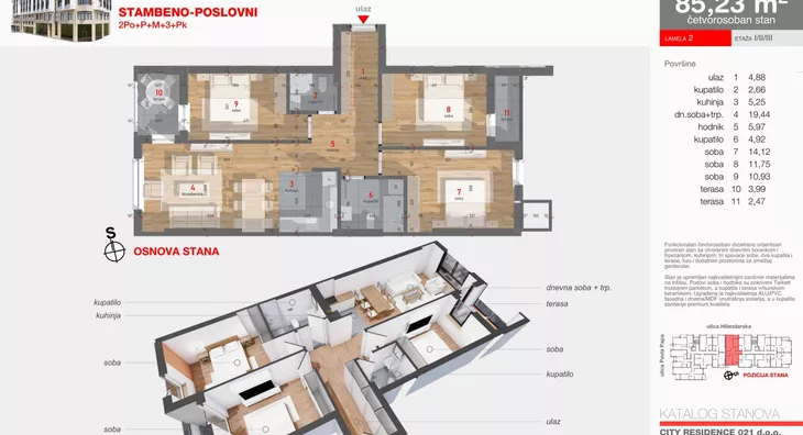 • Stambeno -poslovni objekat spratnosti 2Po+P+M+3+Pk