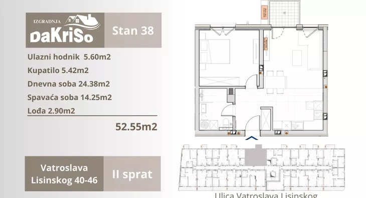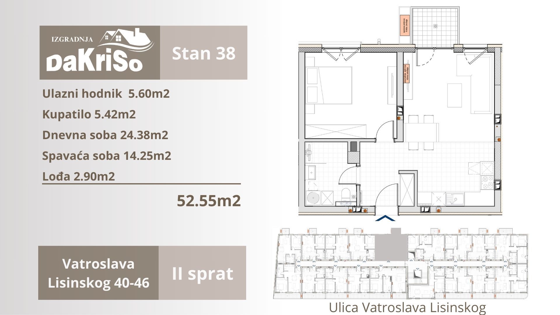 Dvosoban stan na prodaju, Novogradnja, Radijalac, 52.55m²