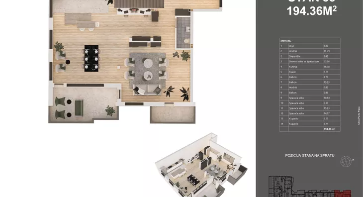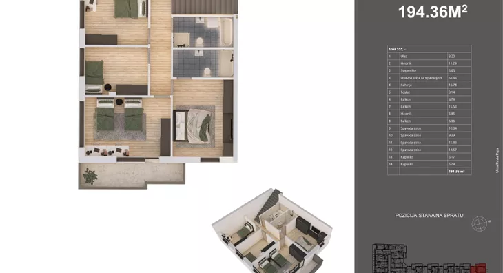 Petosoban stan na prodaju, Novogradnja, Rotkvarija, 194.36m²