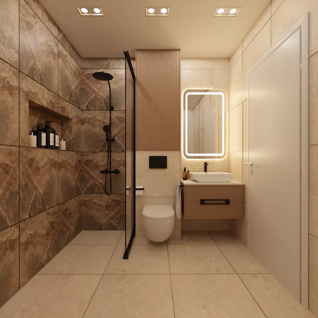 Dobija se potpuno opremljeno kupatilo, bas kao i na slici, kao i identicna unutrasnjost stanova kao na renderu- stolarija, laminat, plocice.