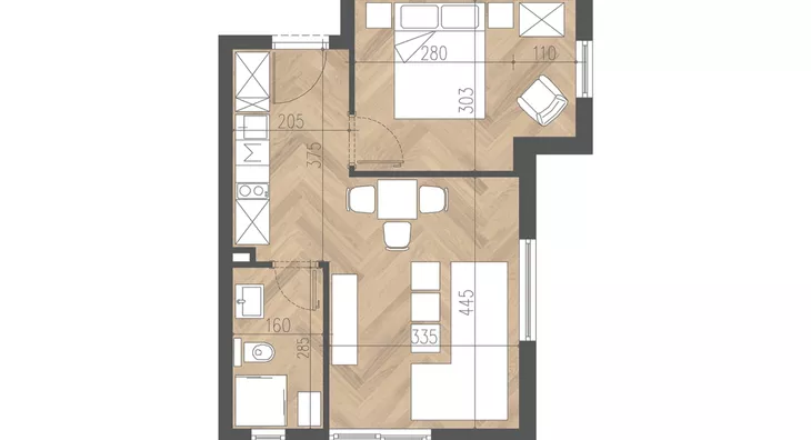 Apartmani dizajnirani u spoju modernog i secesijskog duha pružaju udoban i komforan boravak sa svim pogodnostima. Svetla visina svih prostorija je 278cm. Unutrašnja stolarija je visine 220cm, ukrašena dekorativnim pervajz lajsnama.