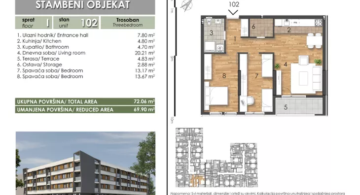 Trosoban stan na prodaju, Novogradnja, Telep, 69.9m²