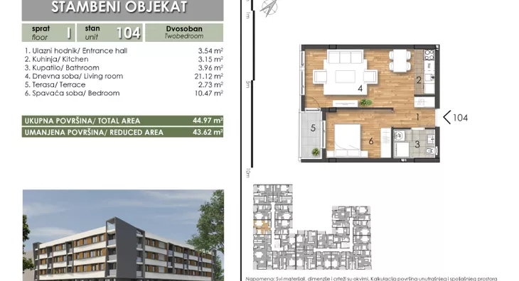 Dvosoban stan na prodaju, Novogradnja, Telep, 43.62m²