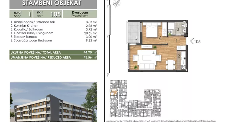 Dvosoban stan na prodaju, Novogradnja, Telep, 43.56m²