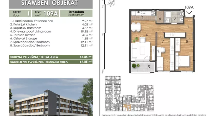 Trosoban stan na prodaju, Novogradnja, Telep, 64.85m²