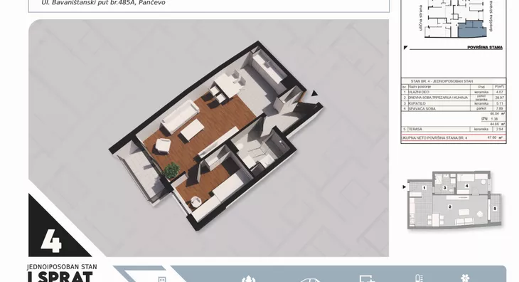 Jednoiposoban stan na prodaju, Novogradnja, Tesla, 47.6m²
