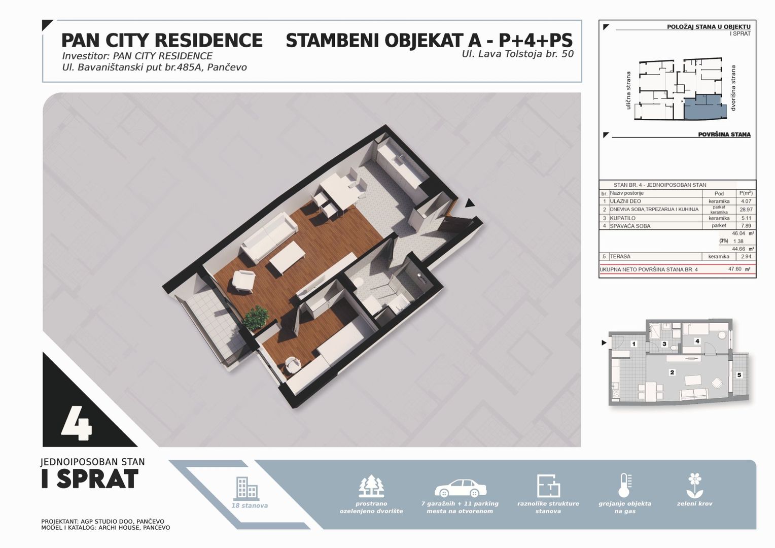 Stambeni kompleks "Pan City Residence" gradi se u naselju Tesla u najlepšoj ulici Lava Tolstoja, činiće ga dve zgrade sa 32 stana sa prelepim dvorištem, garažanim i parking mestima.
