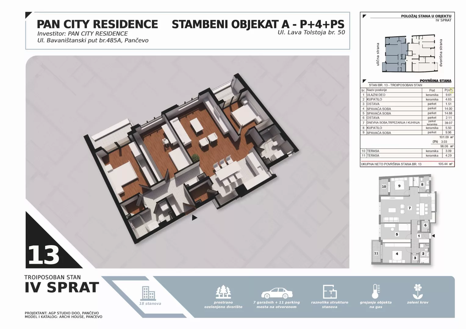 Stambeni kompleks "Pan City Residence" gradi se u naselju Tesla u najlepšoj ulici Lava Tolstoja, činiće ga dve zgrade sa 32 stana sa prelepim dvorištem, garažanim i parking mestima.