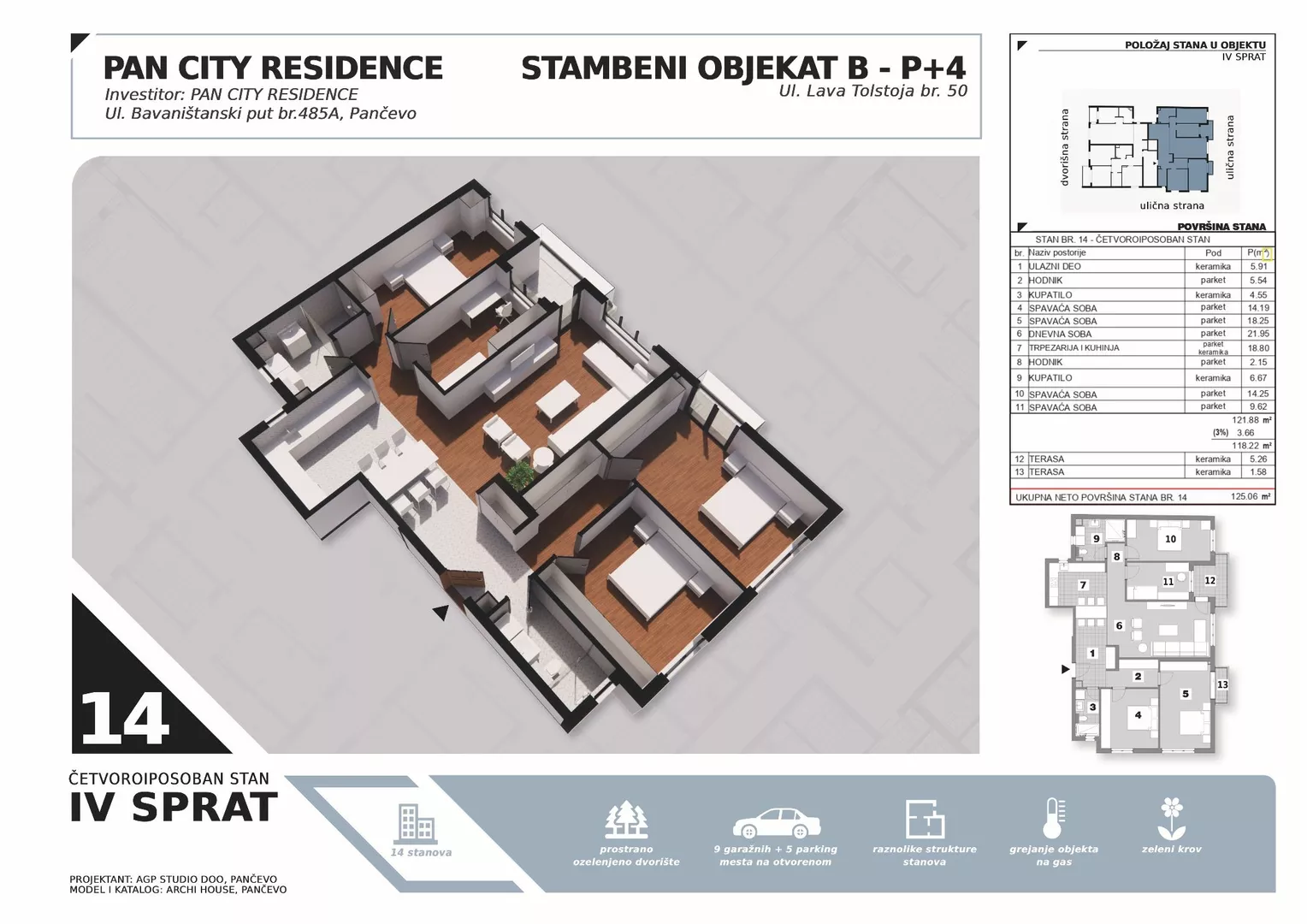 Stambeni kompleks "Pan City Residence" gradi se u naselju Tesla u najlepšoj ulici Lava Tolstoja, činiće ga dve zgrade sa 32 stana sa prelepim dvorištem, garažanim i parking mestima.