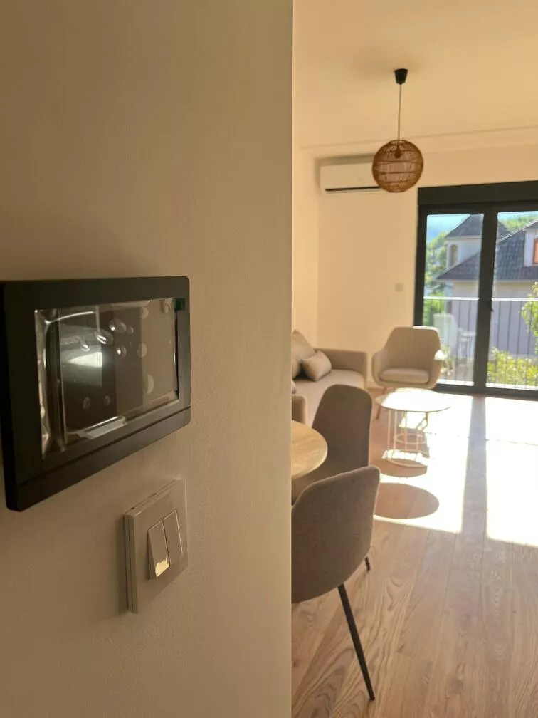Svi stanovi su opremljeni smart funkcijama, uključujući kontrolu pristupa putem elektronskih brava i mogućnost upravljanja grejanjem i hlađenjem, omogućavajući vam da živite u skladu sa najnovijim tehnologijama. Nudimo mogućnost kompletnog opremanja stanova.
