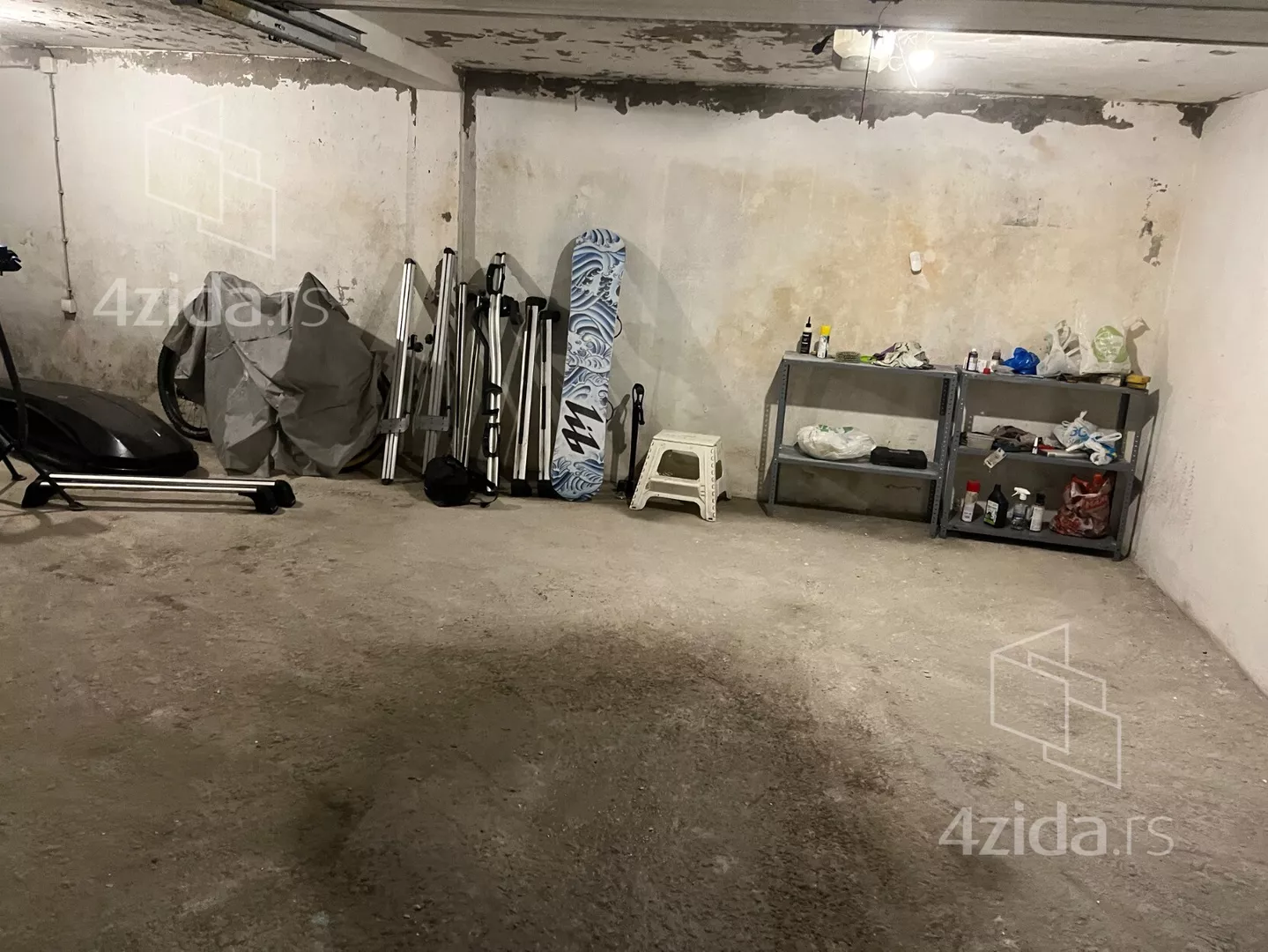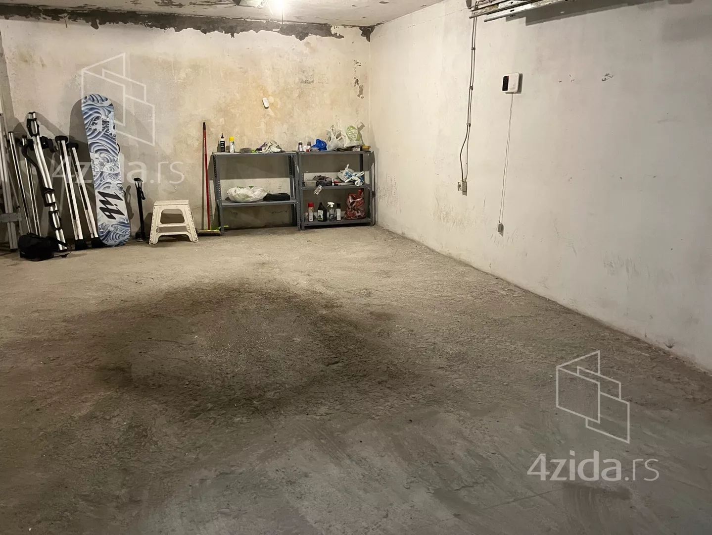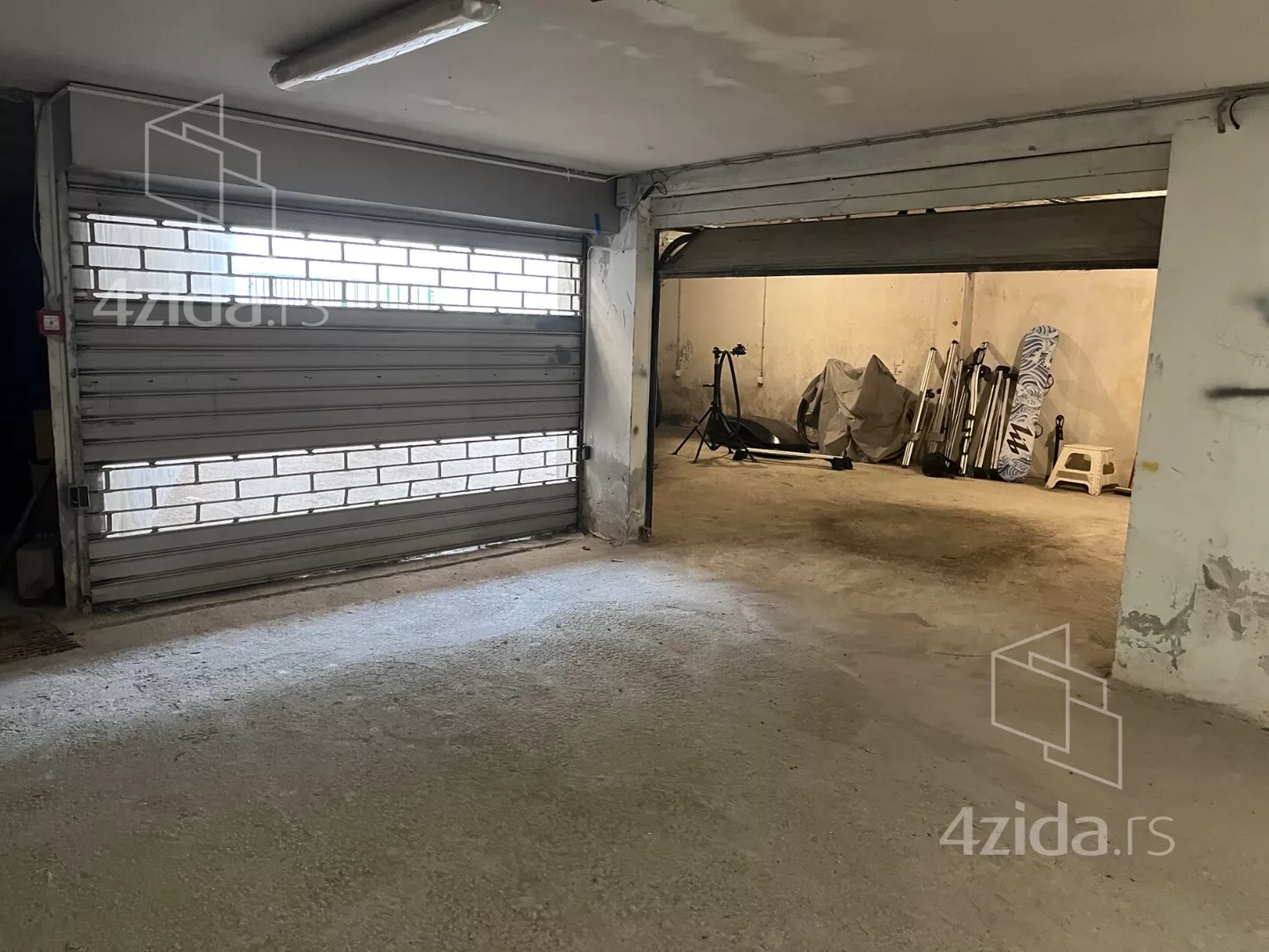 Zidana garaža sa strujom, daljinskim otvaranjem i asfaltnim prilazom. Suterenski prostor ima svoja čelična rolo vrata, a garaža ima dodatna svoja vrata što pruža dvostruku zaštitu. Uknjižena je na 22m², ali realna površina iznosi 32m². Jedno parking mesto.