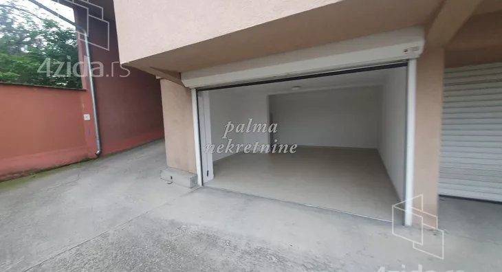 Velika garaža sa rolo vratima i mokrim čvorom.