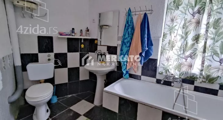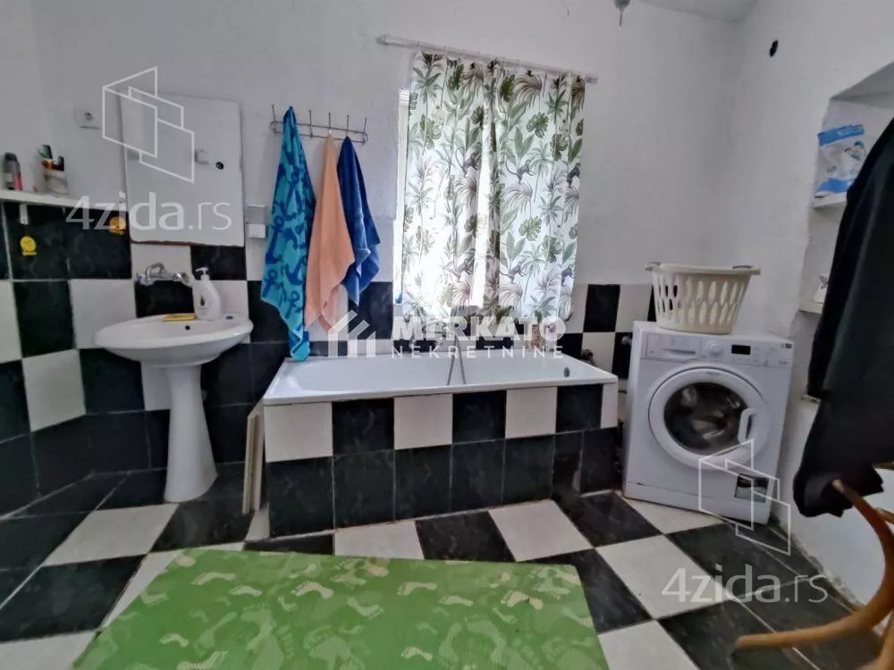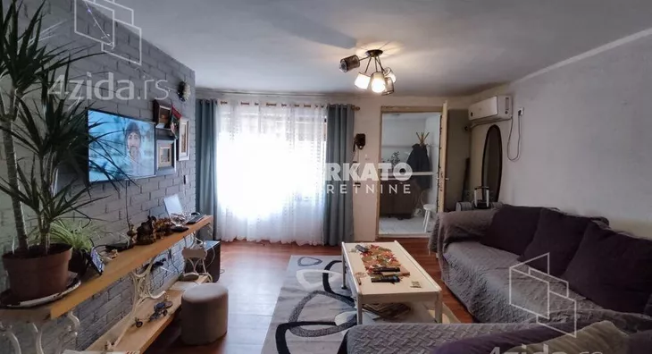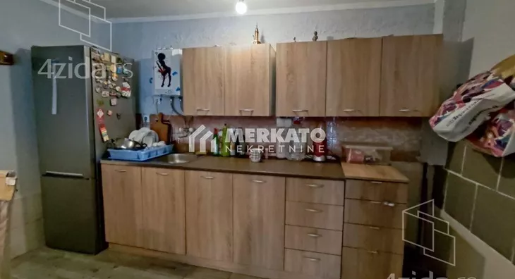 Prizemna, trosobna kuća sa malim dvorištem, na odličnoj lokaciji. Sastoji se od predsoblja, kuhinje sa trpezarijom i dnevnom sobom, degažmana, dve spavaće sobe, ostave i kupatila. Jedan deo kuće je građen od mešanog materijala sa kara-tavanom (59m2), dok je drugi, noviji, izgrađen 2000.godine, od čvrstog materijala sa betonskom tavanicom (35m2). Poslednje renoviranje kuće je izvršeno pre tri godine. Tada je zamenjena elektroinstalacija, postavljen laminat i keramičke pločice u kuhinji. Stolarija drvena, bavalit fasada, popločano dvorište i natkrivena terasa, monofazna struja sa dvotarifnim brojilom. U kući postoji gasna instalacija, ali je priključak odjavljen. Ova kuća se nalazi u neposrednoj blizini autobuskog stajališta, ambulante, marketa, osnovne škole, vrtića, apoteka... Nije pogodno za kreditne kupce. Agencijska provizija: 2% Broj upisa u Reg.posrednika: 1378