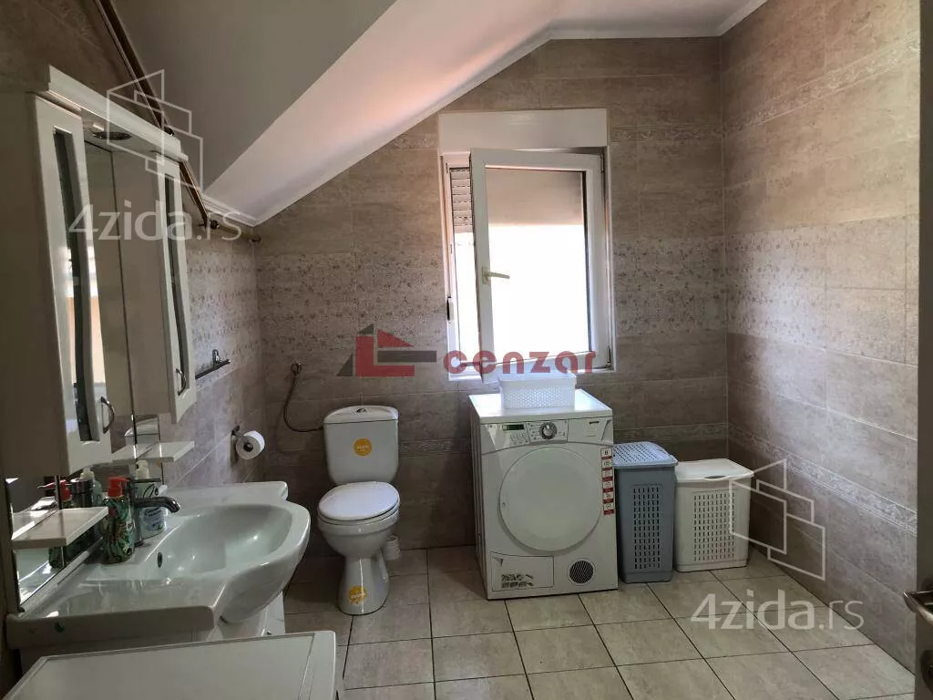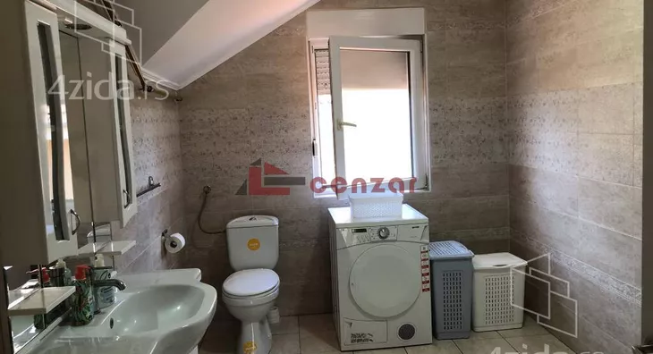 Prodaje se kuća građena 2017. godine u dve etaže.U prizemlju se nalazi ulazno stepenište,predprostor,toalet,kuhinja,dnevni boravak sa trpezarijom koji ima izlaz na dvorišnu terasu,prostor ispod stepeništa koji se koristi kao ostava ,radna soba.U potkrovlju se nalazi hodnik iz kog se ide u dve dečije sobe i kupatilo,drugi hodnik iz kog se ide na balkon, spavaću sobu i kupatilo.Na temeljima od 80 cm zidani su spoljni zidovi od pune opeke sa vertikalnim armiranobetonskim serklažima.Pregradni zidovi su od pune opeke .Unutrašnja stolarija od medijapana.Na podovima se nalazi hrastov parket i keramičke pločice,stolarija pvc sa roletnama,struja trofazni priključak,kanalizacija i voda su gradska,grejanje na gas.U sklopu kuće postoji garaža.