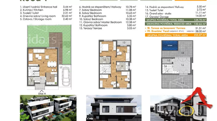 Konkretna nekretina ima svoje dvorište od 58m2, bazen i garažu od 15m2.