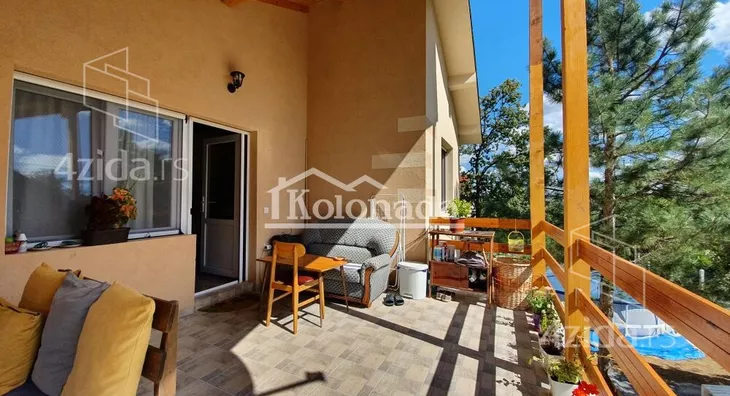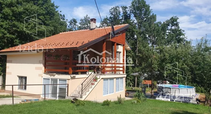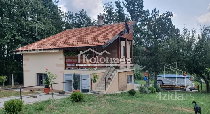 Kuća se nalazi u mirnoj i tihoj ulici, okružena hrastovom šumom. Ima trofaznu struju, gradsku vodu, PVC stolariju sa roletnama i komarnicima, izolaciju i fasadu. Plac je ravan i ograđen. Sastoji se od dve etaže. Prva etaža ima dnevni boravak sa kuhinjom, spavaću sobu, hodnik, kupatilo i jednu prostranu višenamensku prostoriju. Druga etaža se sastoji od hodnika, kupatila, dnevnog boravka sa kuhinjom i trpezarijom, spavaće sobe i velike terase (trem). Kuća je kompletno renovirana sa novim instalacijama za struju i vodu i prodaje se namestena. Licenca 469. Agencijska provizija je 2%. ,
