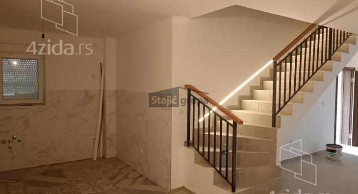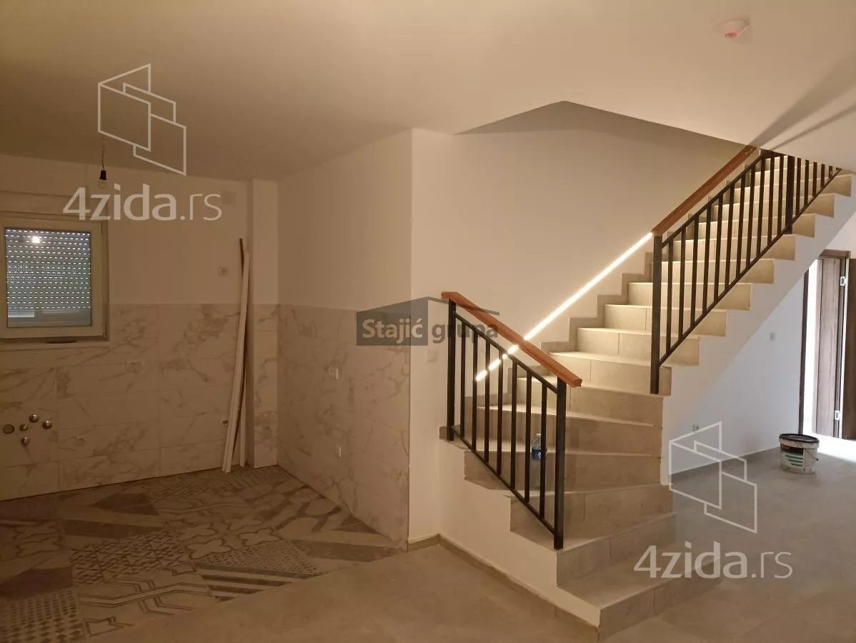 I etaža: predsoblje, kotlarnica, kuhinja, prostrani dnevni boravak sa trpezarijom, dve spavaće sobe, kupatilo, terasa, garaža.