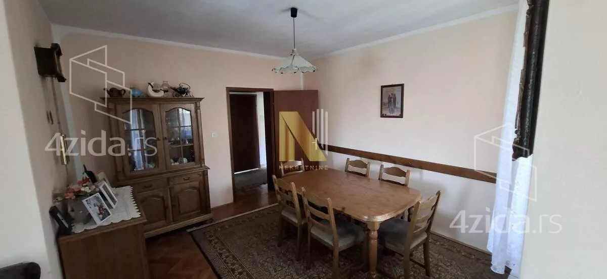 Na spratu se nalazi: 4 sobe, kuhinja, dnevni boravak sa trpezarijom, kupatilo, wc i terasa. U prizemlju: soba, kuhinja, ostava, vešernica, kotlarnica i garaža. Grejanje je na gas, čvrsto ili tečno gorivo. U dvorištu se nalazi i magacinski prostor površine 160m2, sa izdvojenom
