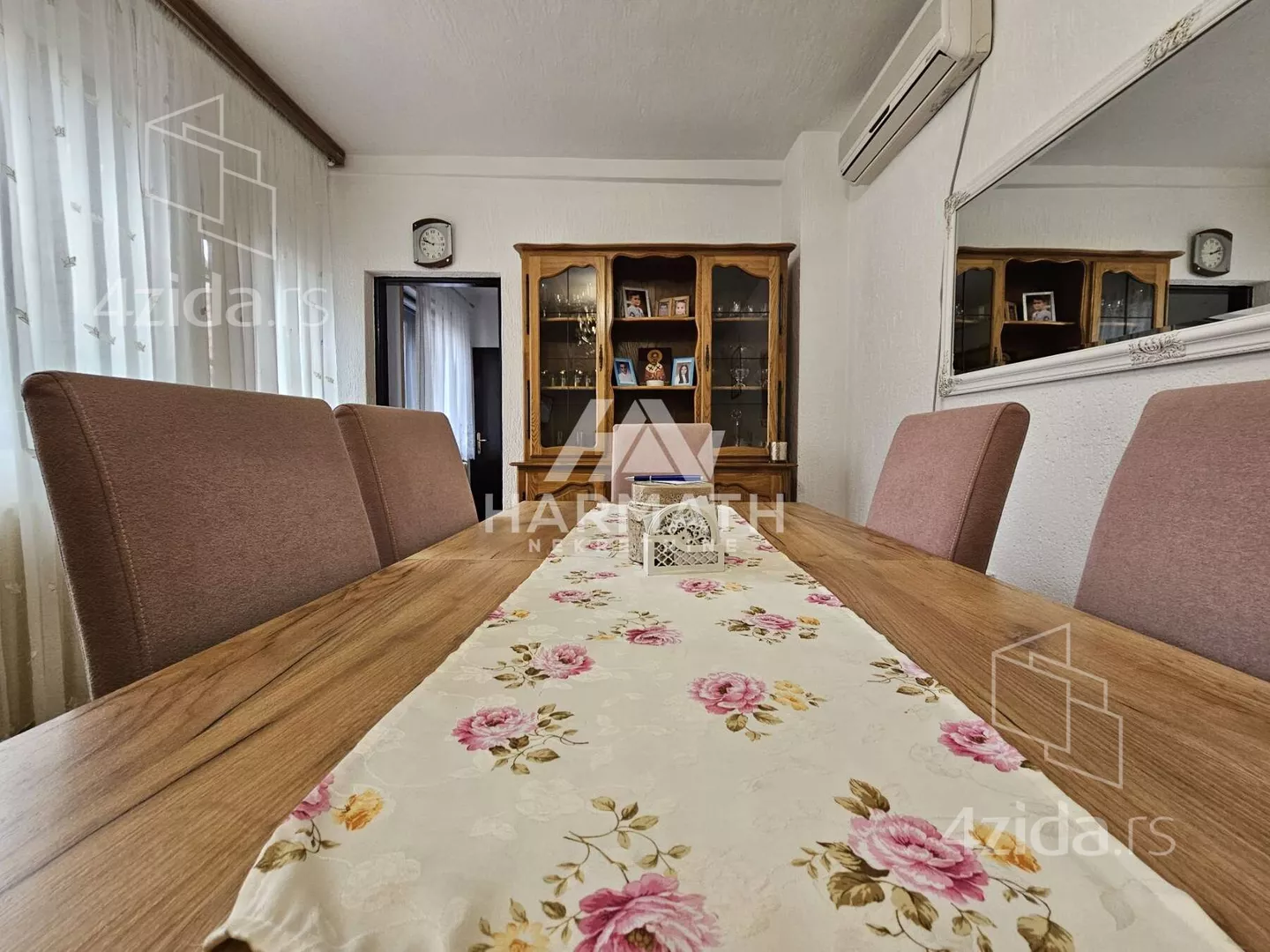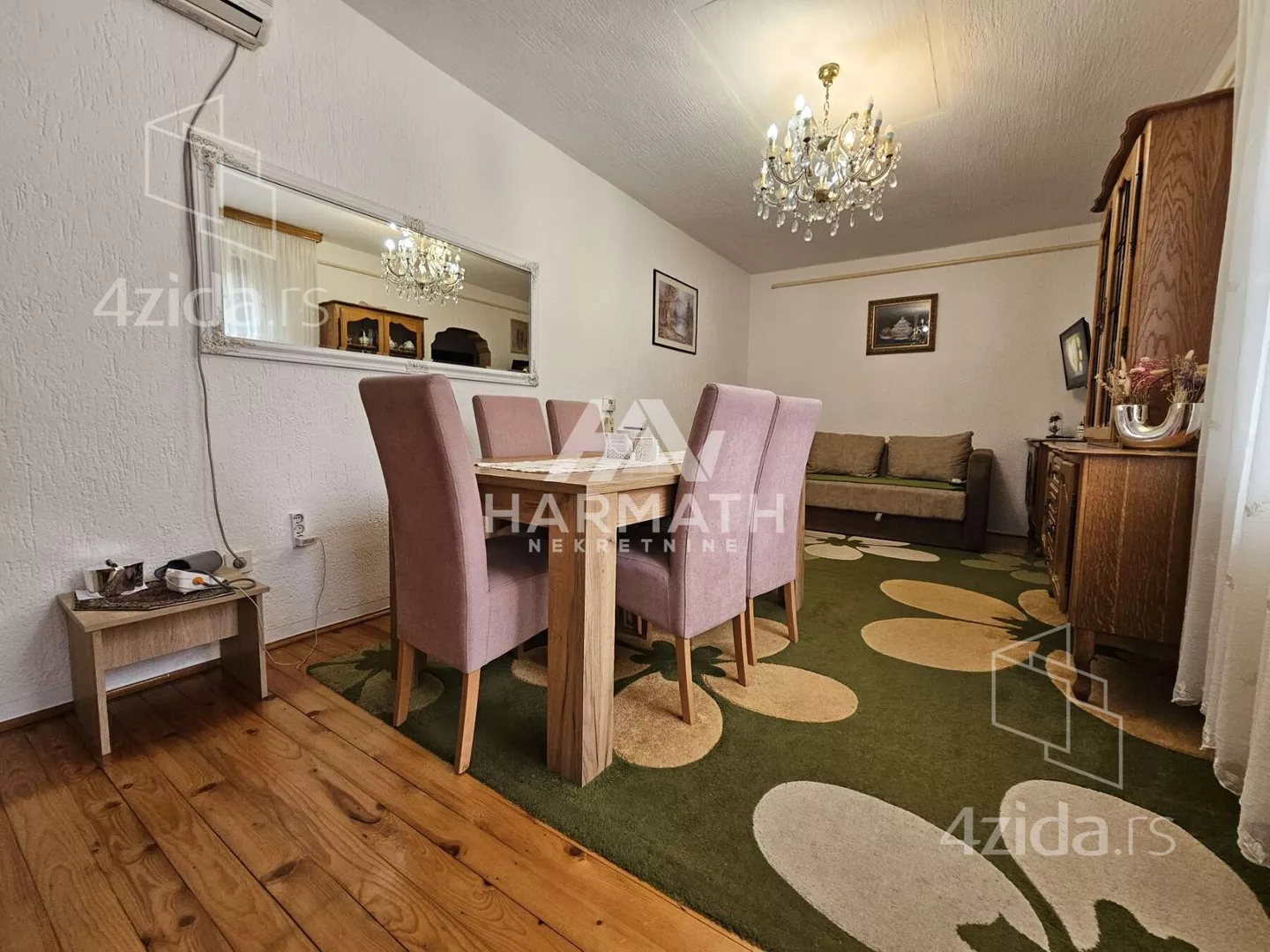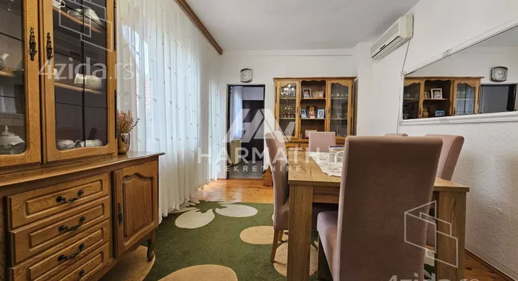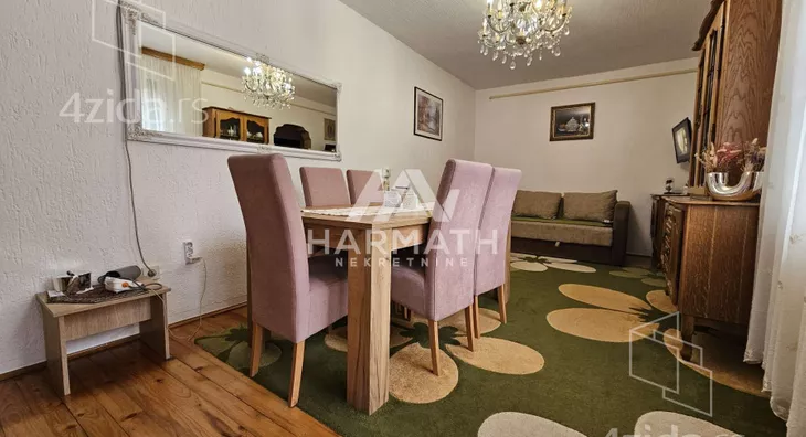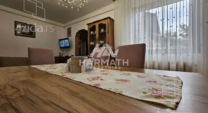 NA PRODAJU –NAMEŠTENA KUĆA NA ODLIČNOJ LOKACIJI (96 m², plac 355 m²) Površina objekta: 96 m² Površina placa: 355 m² Kuća se nalazi na mirnoj i funkcionalno organizovanoj lokaciji pogodnoj za porodični život. U neposrednoj blizini nalaze se prodavnice, vrtić, škola, parkovi, autobusko stajalište i izlaz na autoput – idealna kombinacija komfora, dostupnosti i privatnosti. Tehničke karakteristike: -Grejanje: centralno na gas -Prozori i vrata: drvena stolarija -Podne obloge: brodski pod, parket i pločice -Klima uređaji: 2 klime -Gradska voda i kanalizacija priključeni Dodatni objekti: -Letnja kuhinja -Šupa -Garaža Raspored prostorija: -Dnevni boravak -Kuhinja sa ostavom -Dve spavaće sobe -Dva kupatila -Predsoblje / hodnik -Letnja kuhinja (poseban prostor) -Garaža sa dodatnim skladišnim prostorom Prednosti: - Useljiva odmah – kuća se prodaje kompletno nameštena -Kompaktno, ali funkcionalno dvorište (355 m²) – lako za održavanje -Centralno grejanje na gas -Drvena stolarija -Blizina vrtića, škole, prodavnica, parkova i javnog prevoza -Letnja kuhinja i šupa omogućavaju dodatnu organizaciju prostora Cena: 110.000 EUR Više informacija možete pronaći na sledećem linku: https://harmathnekretnine.rs/detalji-nekretnine/469 Za dogovor oko gledanja stana možete nas kontaktirati na broj: +38... (prikaži broj telefona)