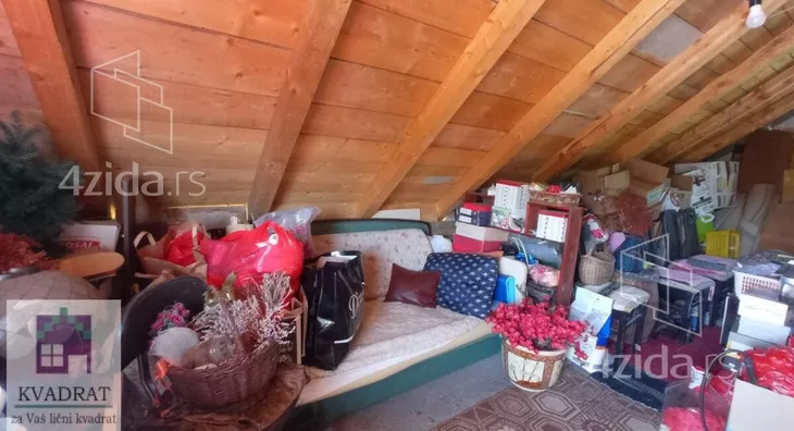 U suterenu postoje dve prostorije od kojih se jedna može koristiti kao ostava, a druga kao letnja kuhinja. Prizemlje se sastoji od zatvorene terase, kuhinje sa trpezarijom ,velike spavaće sobe sa radnim delom i kupatila. Unutrašnje stepenište vodi na sprat koji se sastoji od jednog otvorenog prostora koji se može adaptirati u dve spacaće sobe, jedna bi imala izlaz na terasu sa koje se pruža predivan pogled na okolinu. Prodaje se polunameštena.