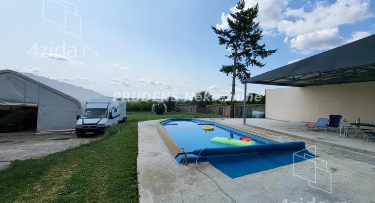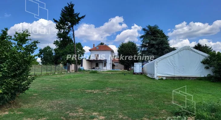 Kuća od 400m2 modernog rasporeda prostorija na placu površine 28.5 ari sa širinom fronta 28 metara. Sa placa se pruža otvoren pogled.