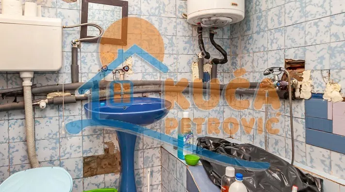 Na prodaju prizemna kuća od 60 m2 kod koje je započeto renoviranje, kao i ozakonjenje i uređenje na parceli. Sastoji se od ulaznog predsoblja, dnevne sobe, dve spavaće sobe, trpezarije sa kuhinjom i kupatila, što sve skupa daje veću kvadraturu od uknjižene (76 m2). Plac je mali, ispred i oko kuće, površina istog će biti regulisana u pravnom postupku. Na kući je postavljena izolacija. U svim prostorijama, sem jedne, laminat na podu, stolarija drvena a grejanje je kombinovano. Uknjiženo.Pozovite za više informacija.