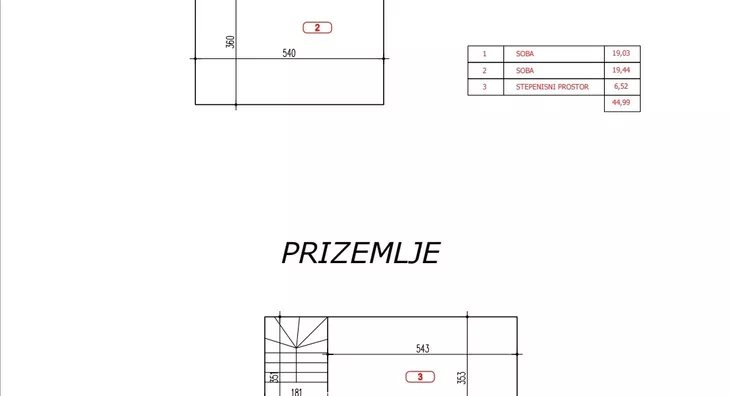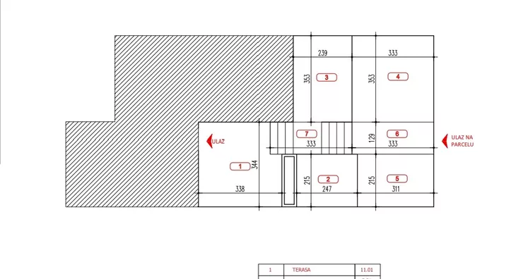 Uknjižena na svojinu na 95 m2, Pr+1, stvarne površine u sve 4 etaže sa terasama 201 m2.