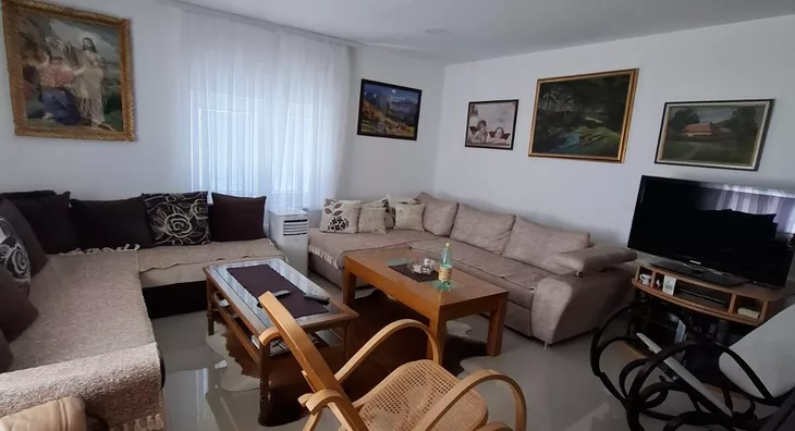- Opremljenost: Namešteno - TV, klima, veš mašina, kuhinjski elementi, sudo mašina, frižider, mikrotalasna rerna, šporet, rerna, ležaj, plakar, ugradni plakar