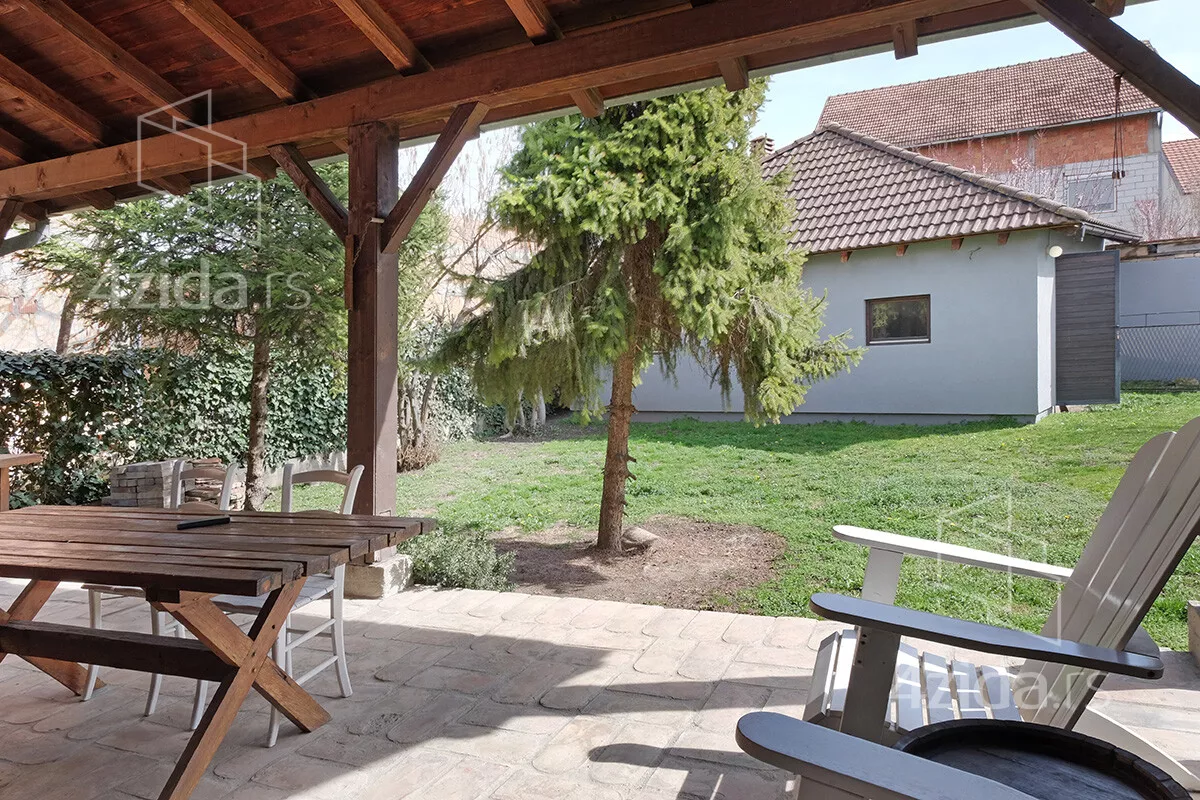 U zadnjem delu dvorišta je izgradjena i uknjižena pomoćna prostorija oko 40m2 ( sada funkcioniše kao radionica), termoizolovana , prilkjučena voda, struja i kanalizacija.Moguća namena letnje kuhinje , kuće za goste, kancelarije i sl.Ostavljena je puna visina do krova , tako da se može dodatno urediti zavisno od želje i potrebe novog vlasnika.