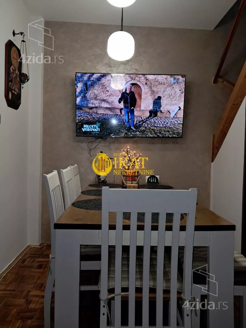 - Opremljenost: Namešteno - internet, TV, klima, kuhinjski elementi, frižider, mikrotalasna rerna, šporet, rerna, ležaj, plakar, ugradni plakar