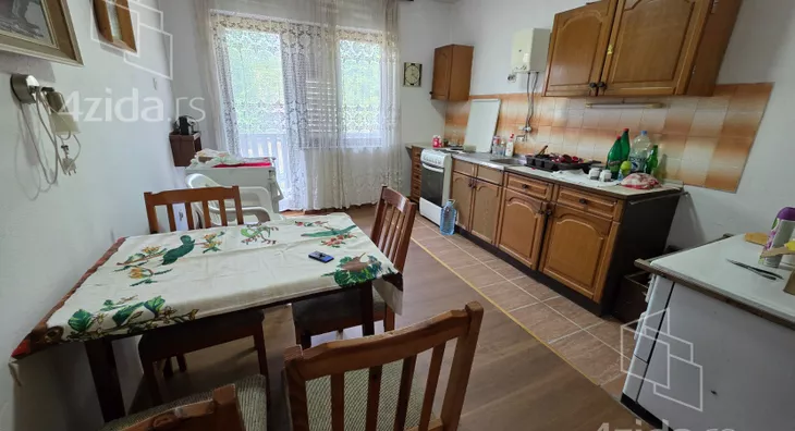 Na prodaju veća porodična kuća od 300m2 na 6,2ara placa u naselju Budžino Brdo u Jagodini. Sprat ima grejanje na kotao na čvrsto i kotao na struju.Kuća ima dva ulaza u dve stambene jedinice sa dva strujomera i dve garaže. Moguće je jedan deo kuće izdavati a u drugom živeti ili za život višečlanih porodica.Kuća ima trofaznu struju, gradsku vodu i kanalizaciju.Gas je prošao odmah pored na ulici.Kuća je uknjižena 1/1 i legalizovana.