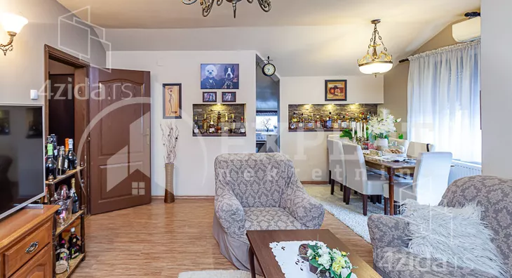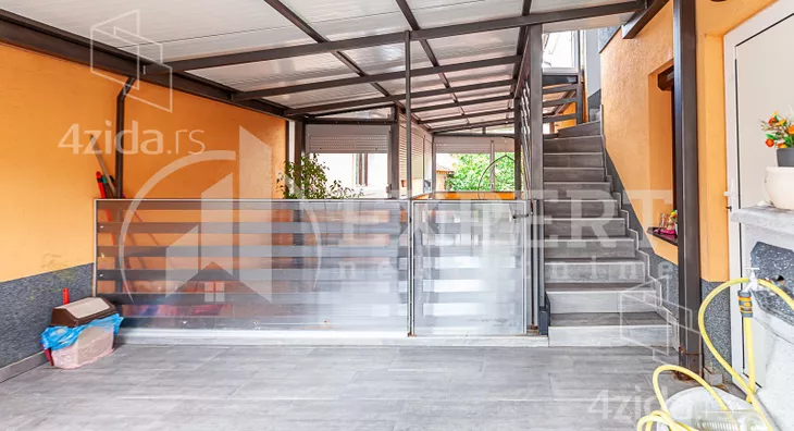 Na prodaju odlična kuća bez ulaganja, strukture P+II, koja se nalazi na jednoj od trenutno najtraženijih lokacija u neposrednoj blizini parka Čair, Hitne pomoći, Kliničkog centra i ostalih vitalnih objekata koji olakšavaju svakodnevni život. Kuća se nalazi na placu površine 3 ara. Odlična investicija za porodičan život, za izdavanje zbog same lokacije, ali i za poslovni prostor za poliklinike i ordinacije. Prizemlje je površine 100 m2 i u funkciji je poslovnog prostora i magacina. Prizemlje je trenutno izdato. Sastoji se od ulazne prostorije, hodnika koji je trenutno u funkciji magacina, još jedne prostorije gde se nalazi kuhinja, kupatila i wc-a. U sklopu prizemlja nalazi se kotlarnica i garaža koja poseduje struju i priključak za vodu. Uknjižena površina prvog sprata je 92m2 i sastoji se od dnevnog boravka sa kuhinjom i trpezarijom, spavaće sobe sa garderoberom, dečije sobe i kupatila. Uknjižena povšina drugog sparat je 73 m2, sastoji se od ulaznog hodnika, dnevnog boravka sa trpezarijom, dve spavaće sobe, kupatila i terase. Oba sprata su istog rasporeda i imaju strukturu trosobnih stanova. Svi stanovi su etažirani i uknjiženi. Prvi sprat je renoviran prošle godine, luksuzno je uređen i kompletno opremljen novim nameštajem i kvalitetnim električnim uređajima. Drugi sprat je takođe kompletno sređen i ne iziskuje dodatna ulaganja. Kuća poseduje i prelepu, veliku terasu, koja je podeljena na dva dela i koja je idealna za odmor i uživanje. U celoj kući je sprovedeno etažno grejanje, poseduje 3 u 1 kotao: na struju, pelet i čvrsto gorivo. Ceo objekat je rađen najkvalitetnijim materijalima: kompletan materijal Bekament, kao i Bekament izolacija 10 cm, ograda od gvožđa, popločana terasa i stepenice, kapija na daljinsko otključavanje i ključ. Čisto vlasništvo. Cena kuće je 290.000eur. Za više informacija slobodno nas kontaktirajte.