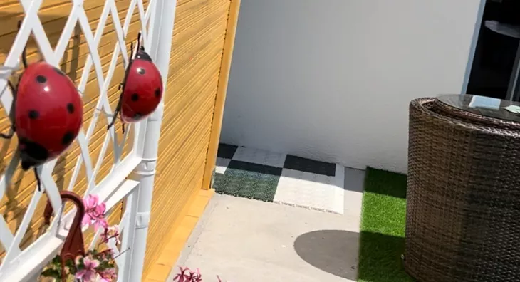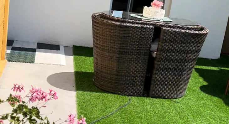 Bašta je ograđena visokom zelenom veštačkom ogradom što pruža potpunu privatnost i mir.