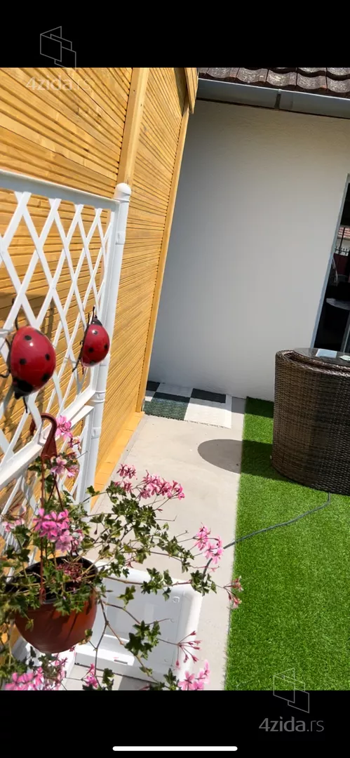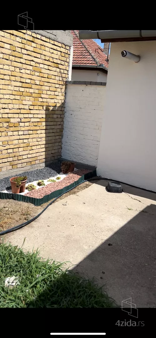 Jedan deo bašte je popločan i na njemu je nova drvena montažna kućica idealna za odmor i letnju oazu.