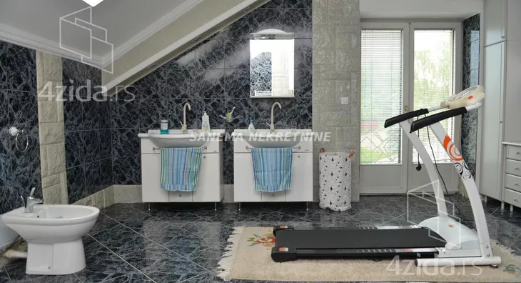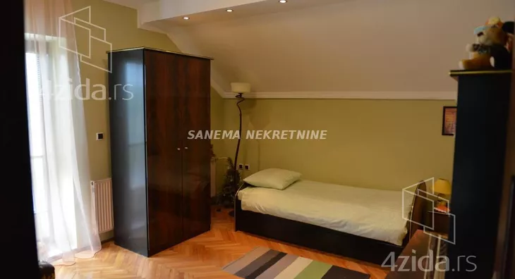 Na spratu se nalaze tri spavaće sobe, odvojen dnevni boravak i prostrani garderober koji može da bude i dodatna soba ili ostava. Prostrano kupatilo sa đakuzi kadom i predivnim pogledom na dvorište.