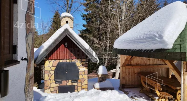 Uknjižena kuća na 67 kvm. Drugi nivo ima isto 67 kvm. Idealna investicija nalazi se na 1450m nadmorske visine prodaje se kompletno nameštena veoma kvalitetnim stvarima i tehnikom. U neposrednoj blizini svih sadržaja, a opet dovoljno uvučena od gužve, pruža mir i osećaj čiste prirode. Ova kuća poseduje veoma lepo dvorište sa pomoćnim objektima i izidanom pečenjarom. Prostorije: I nivo - hodnik, dnevna soba, trpezarija, ostava, kupatilo, kotlarnica; II nivo - pet spavaćih soba, kupatilo. Agencijska provizija 2%.