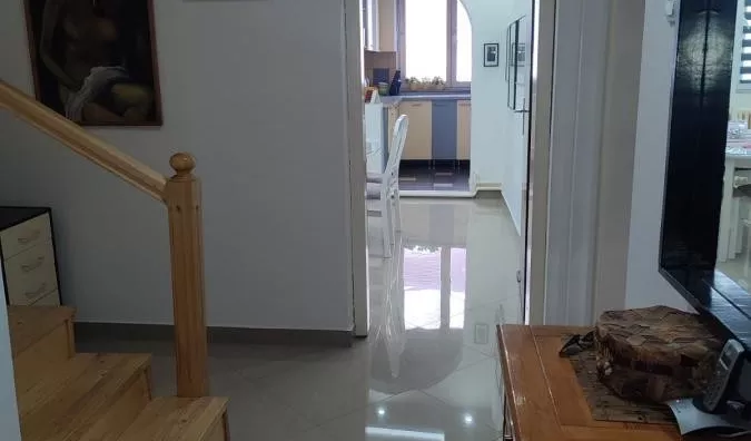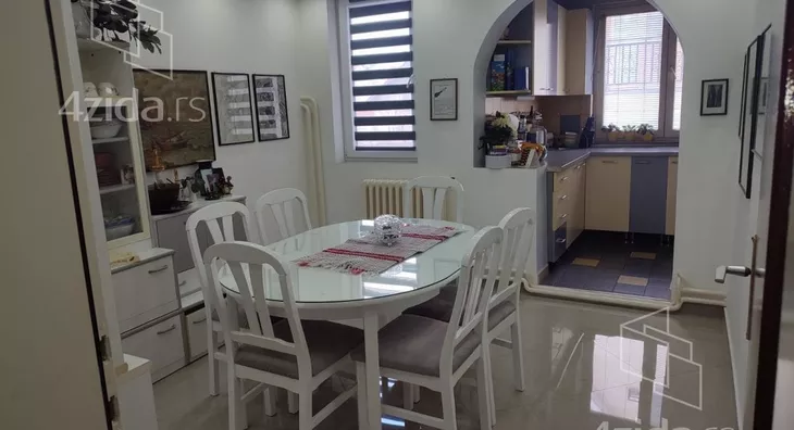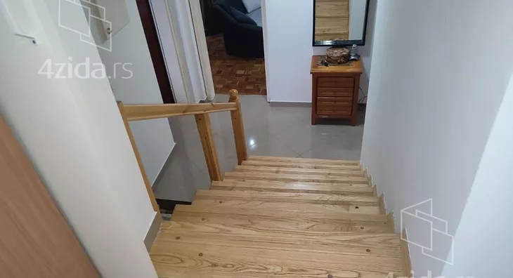 Prodaje se sprat kuće u strogom centru grada u blizini škole 21. Oktobar. Kuća se nalazi u jednosmernoj ulici tako da omogućava miran porodični život. Na nivou je trosobnog stana ali vrlo lako može da se preadaptira i u četvorosoban. Struktura kuće: velika terasa sa ozidanim roštiljem, foaje, predsoblje, kuhinja, trpezarija, velika dnevna soba. Na drugom nivou koji je odvojen sa nekoliko stepenika se nalaze dve velike spavaće sobe, kupatilo i terasa. Komforno, udobno i u građevinskom smislu odlično izgrađen prostor.