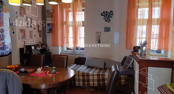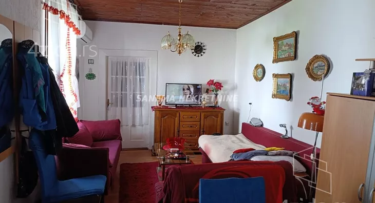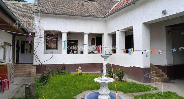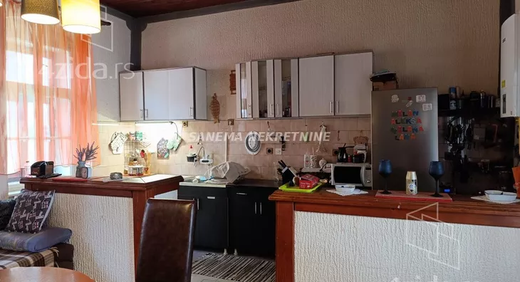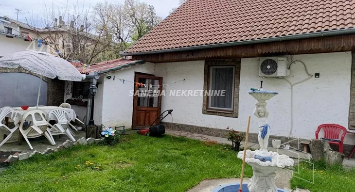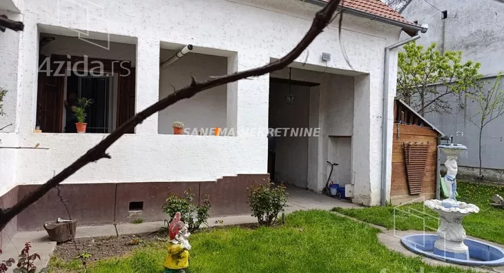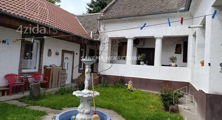 Kuća je čvrste gradnje i veoma lepo održavana, a dvorište je u centru kuće sa pokošenim travnjakom i fontanom. Sobe kuće gledaju na dvorište, sa gonga se ulazi u kuću gde su veliki dnevni boravak sa trpezarijom i kuhinjom, dve spavaće sobe, kupatilo, manja kuhinja sa trpezarijom, poseban ulaz u stan, gde je kuhinja sa dnevnim boravkom, soba i kupatilo. Po podu je brods pod, laminat, u kuhinji i kupatilu pločice, prozori su PVC, odnosno sa ulice je ostao dekorativan hrastov ram. Grejanje je centralno na gas i kaljeve peći.