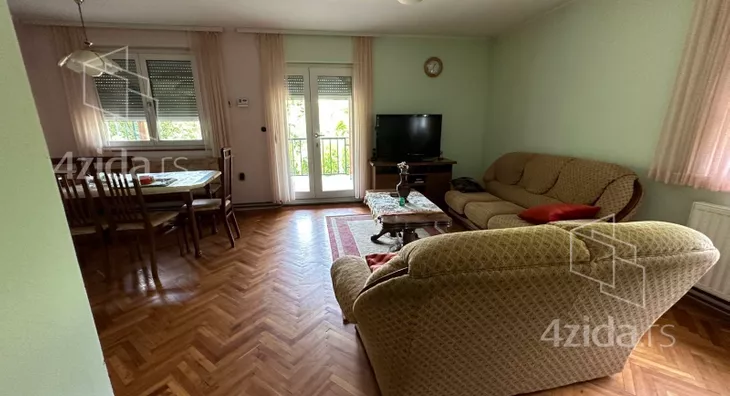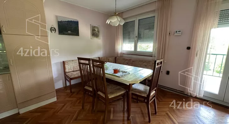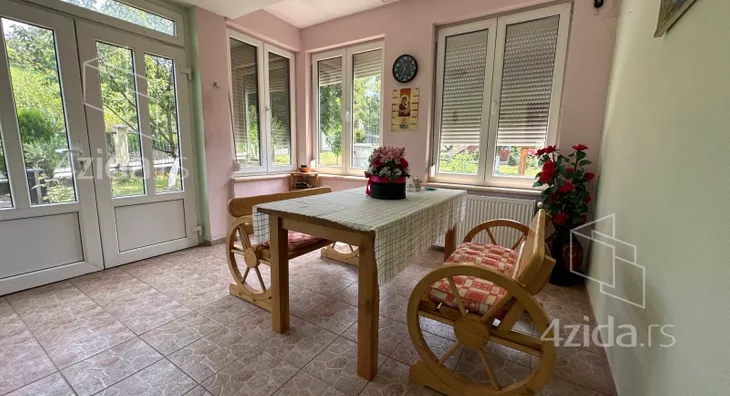 Kuća sa preko 400 m2 lepo uređenih prostorija i prelepo uređenim dvorištem u mirnom kraju na samo 800 metara od kružnog toka kod hotela Tonanti. Postavljena na gotovo 1100 m2 placa idealno mesto za uredan i miran život. Kuća je građena dvehiljaditih godina od čvrstog materijala sa urađenom izolacijom. Svi prozori su Pvc sa ugrađenim roletnama. Opremljena parnim grejanjem na gas mada poseduje kotlove na čvrsto i pelet gorivo. U prizemlju se nalazi zastakljena terasa, dnevna soba , trpezarija, kuhinja, dve spavaće sobe, kupatilo, druga terasa, Na spratu tri spavaće sobe, kupatilo, ogroman hodnik, terasa iznad zelenila od preko 50 kvadrata. U suterenu letnja kuhinja, dve garaže, podrum, kotlarnica. U dvorištu još spoljno kupatilo i ostava. U dvorištu ima puno drveća, šestougaona veranda za sedenje kao i mnoštvo drugog različitog sadržaja.