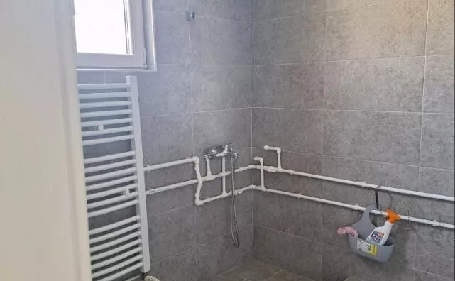 U drugom ulazu u prizemlju ima 2 spavace sobe, kuhinja,dnevna I kotlarnica.