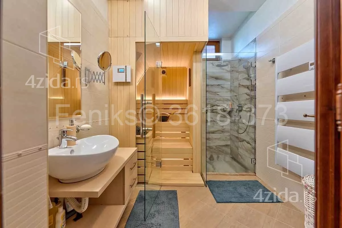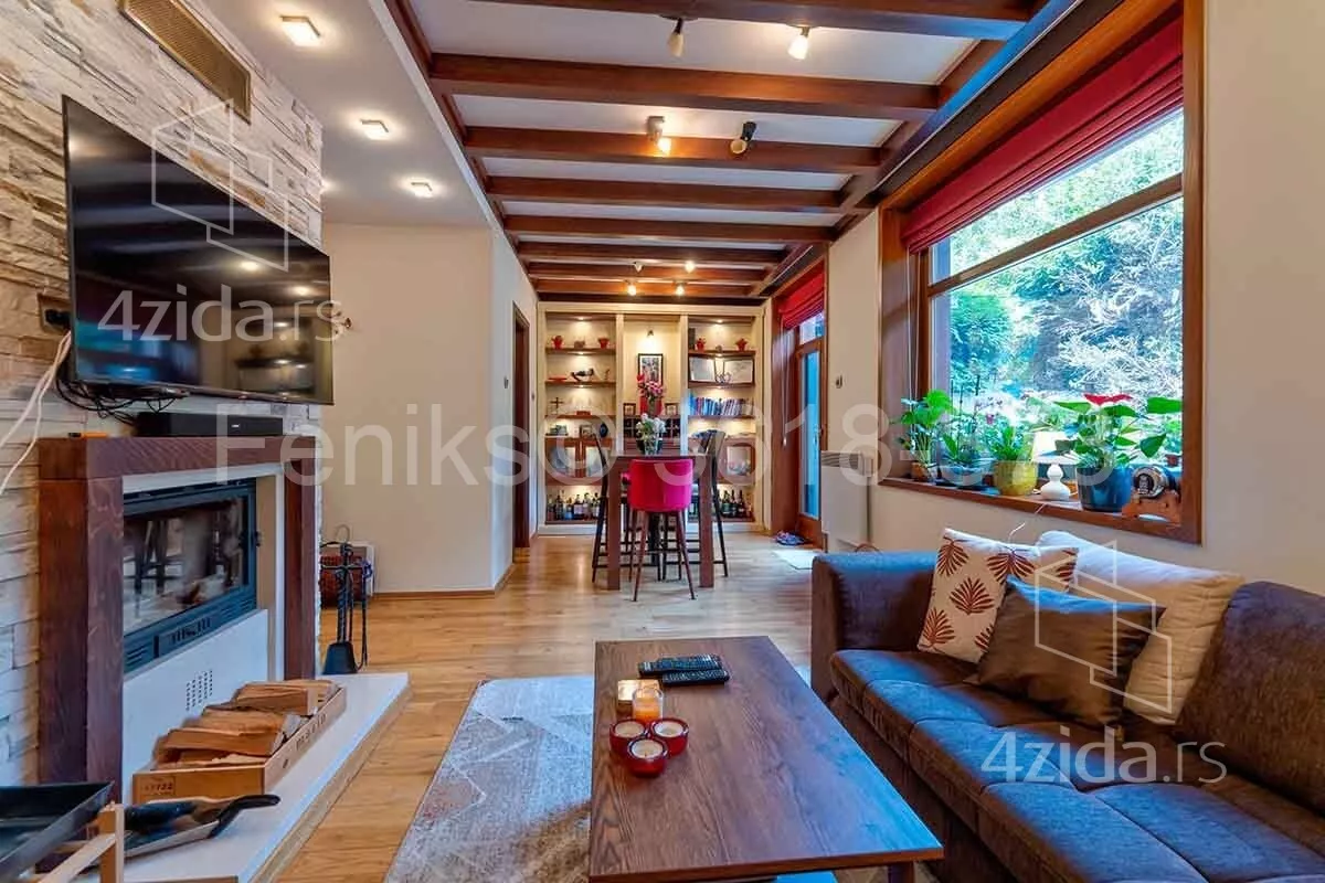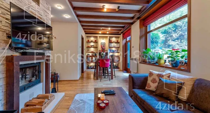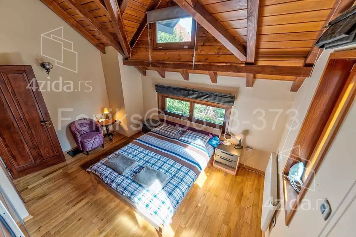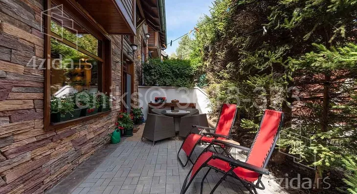 Izvanredna kuća u nizu u prelepom kompleksu na 200m od jezera u predivnom ambijentu koji je održavan. Kuća ima dvorište od 50m2, parking i garažu, vanjski bazen i saunu. Kuća izgrađena u planinskom stilu u blizini svih sadržaja. Idealna za stanovanje i rentiranje.
