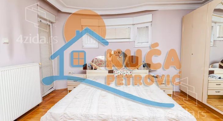 Prodaje se lux kuća po plus vpr plus jedan, u osnovi 150m2, ukupno oko 450 m2, na placu od 288 m2 u blizini Šojke. Kompletno je izgrađena od kalitenih materijala i opremljena nameštajem. Unutrašnje stepenište vodi na visoko prizemlje koje se satoji od prostranog dnevnog boravka sa izlazom na terasu. Par stepenika iz dnevne sobe vode u trpezarijski deo sa izlazom na terasu, a u produžetku je dvoredna kuhinja sa svim potrebnim elementima i tehnikom. Kuhinja ima izlaz u predsoblje kuće iz koga se ulazi u spavaću sobu sa francuskim lezajem i veliko kupatilo. Na spratu kuće se iz hodnika ulazi u sve prostorije, tri spavaće sobe i porodično kupatilo.Veća spavaća soba ima izlaz na dve terase i hodnik sa ugradnim plakarima koji vodi do drugog kupatila. Grejanje je etažno sa kotlom na stuju ili čvrsto gorivo. Sav nameštaj i enterijer je rađen kvalitetnim materijalima. Na podovima je prvoklasni parket i keramika. U suterenskom delu kuće je kotlarnica i garaža za dva vozila. Oko kuće postoji i deo dvorišta sa mogućnošću parkiranja jednog vozila. Zbog svoje lokacije, funkcionalnosti, blizine škole, vrtića, fakulteta, trgovina, idealna je za miran i komforan porodični život. Uknjižena vlasništvo 1 kroz 1.